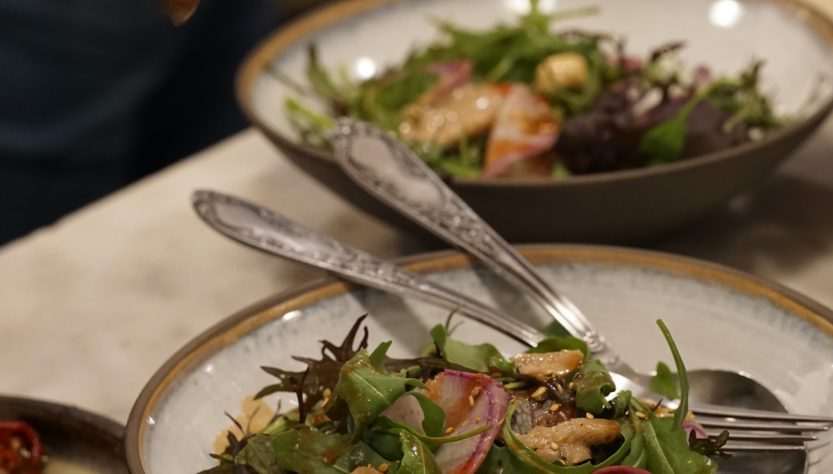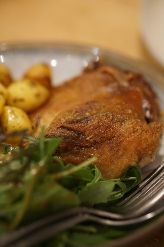 菜单是一页薄薄的纸,菜品经店员在吧台后面摆弄摆弄就上桌。油封鸭腿来自西南法一家肉铺子,比巴黎那种做游客生意的Bistrot端出来的预制菜美味多了,淡金色的鸭皮酥脆鲜香,鸭肉温润入味;有些人一见就望而却步的血肠,放下成见感受它的柔嫩美味吧;连一道最简单的蔬菜沙拉,选材都新鲜柔嫩,都不用怎么调味。